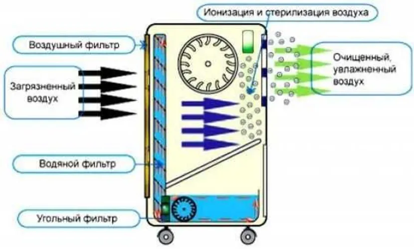 Модели без воздуховода – напротив, нужно периодически заправлять водой.