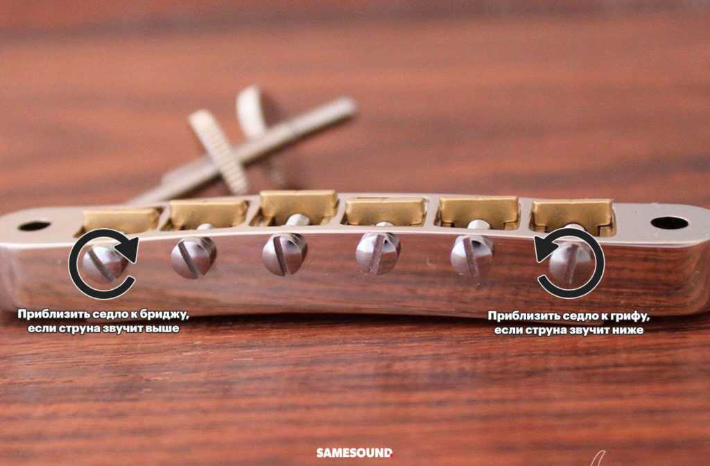 Настройка интонации гитары означает, что вы настраиваете расстояние между струнами и грифом, чтобы убедиться, что все струны играют в тон. Это может быть сделано с помощью лезвия для настройки интонации