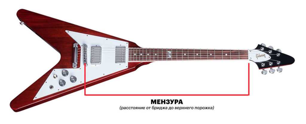 Мензура – это расстояние между бриджем и верхнем порожком гитары. Обычно это расстояние составляет 22-25 дюймов.