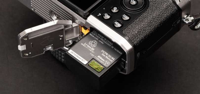 Для сохранения материалов предусмотрен один слот для карт формата SD UHS-I. В Z 6 / Z 7 используются более быстрые и дорогие карты XQD. Лично мы не против XQD-карты, но, учитывая более доступную цену SD-карт, то решение выглядит правильным. К сожалению, камера не поддерживает зарядку от powerbank. Z 50 использует разъем USB-B, а не USB-C. Фотоаппарат также имеет совершенно новую батарею EN-EL25 (1120 мАч), которая меньше, чем EN-EL15b (1900 мАч), используемая в полнокадровых Z. На одной зарядке она может сделать 320 снимков.