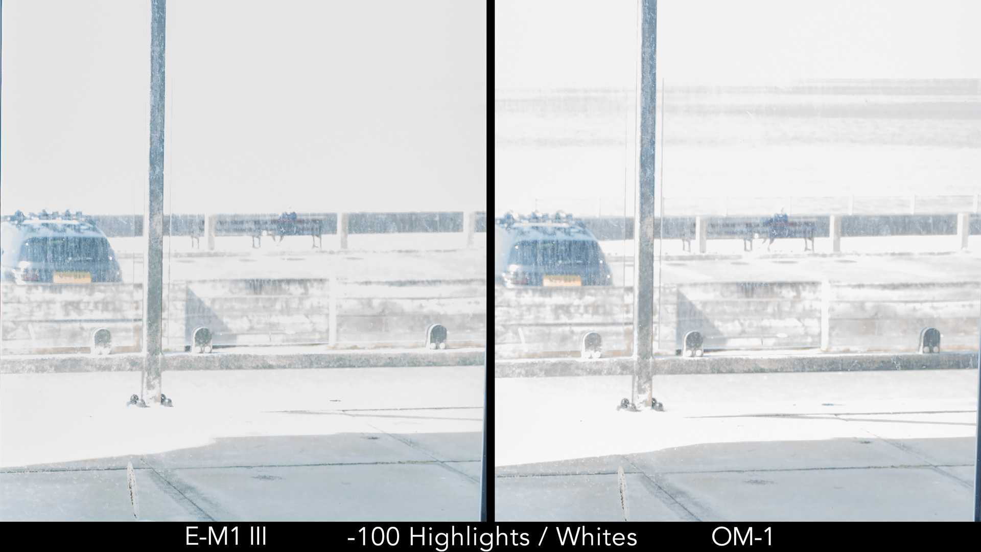 As you can see from the side by side images below, the improvement in dynamic range is a small one. The amount of noise is very similar when recovering the shadows, whereas the OM-1 does a bit better in the highlights.