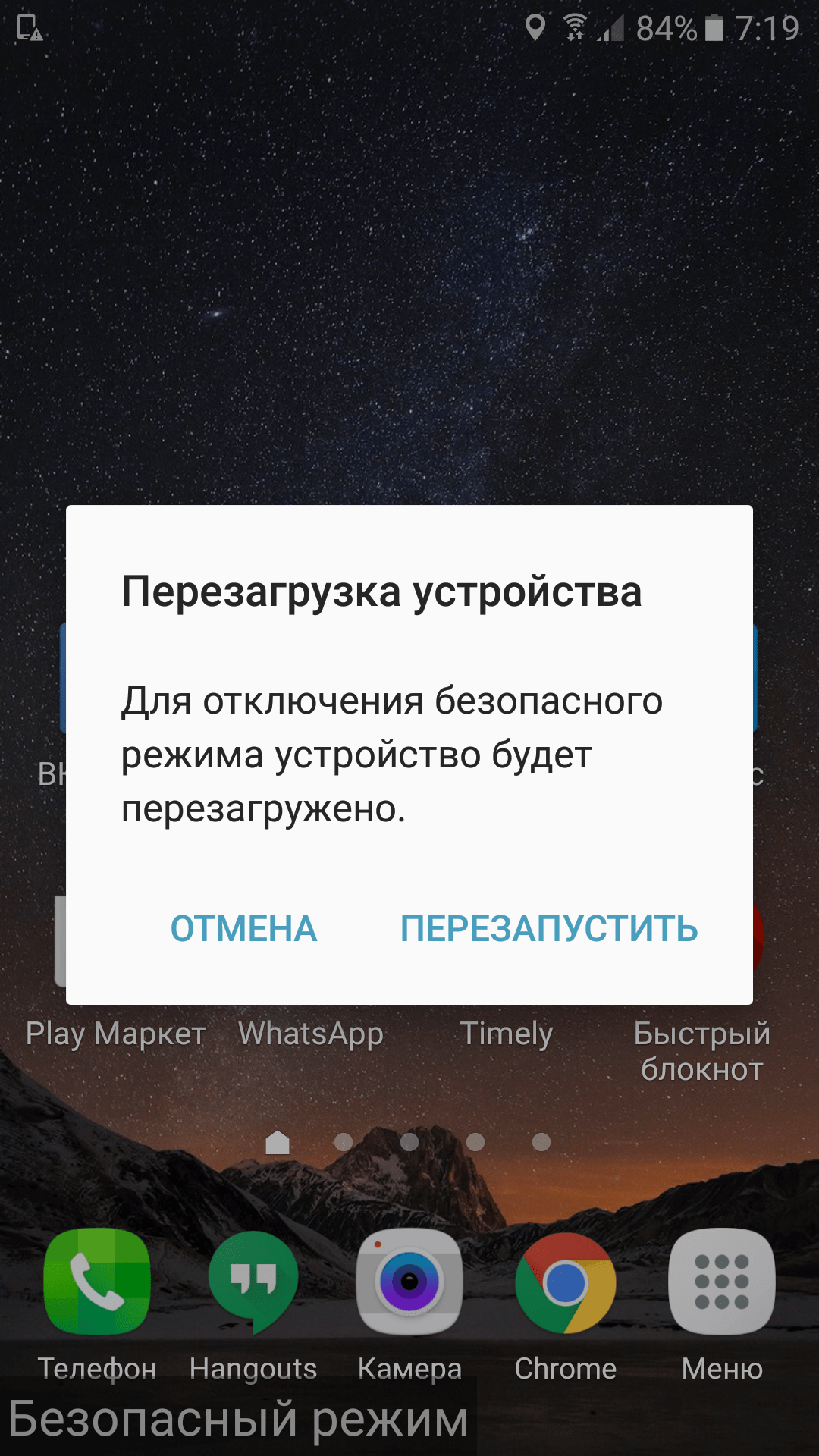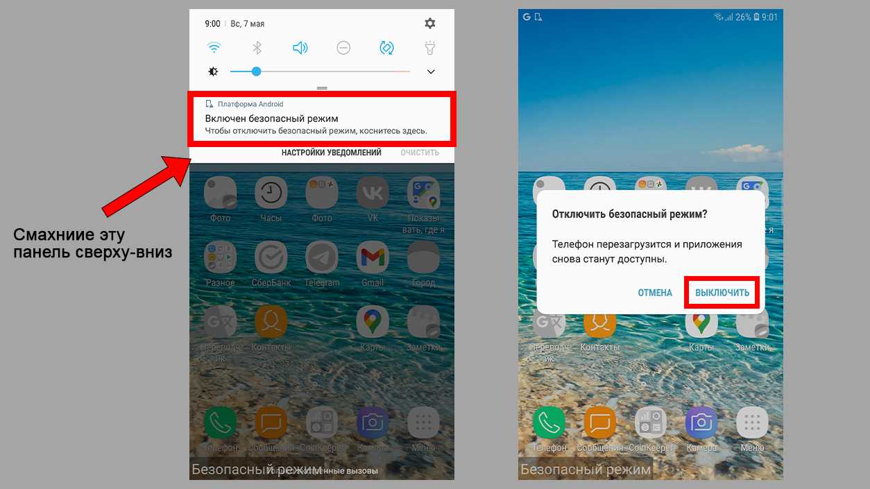 : Если таким образом не получилось выйти из безопасного режима, то можно извлечь аккумулятор, подождать около минуты, вернуть на место и снова включить телефон.
