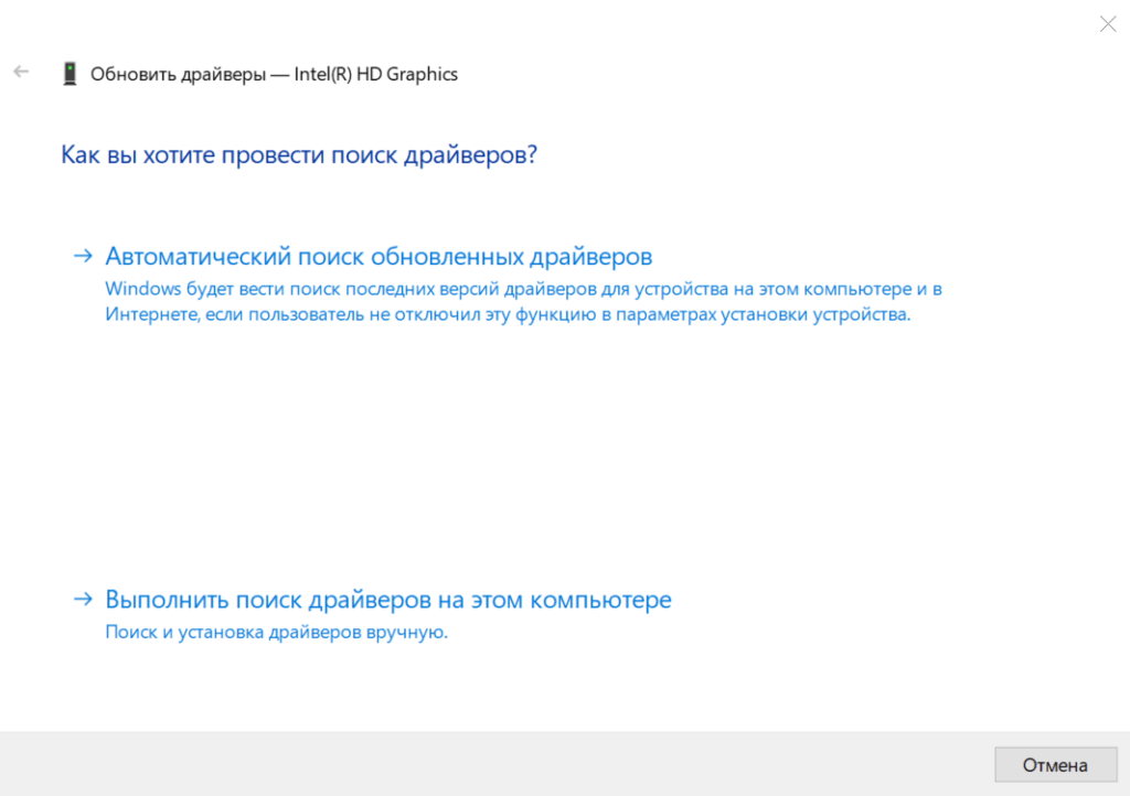 Для установки апдейта нажимаем кнопку «Обновить». При обновлении есть два варианта: автоматическое и ручное. Сначала я всегда выбираю автоматическое. Мастер сам ищет последнюю версию драйвера и при обнаружении переустанавливает её.