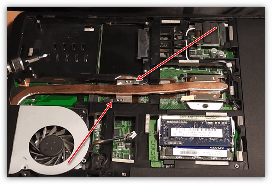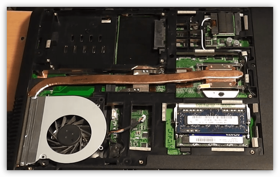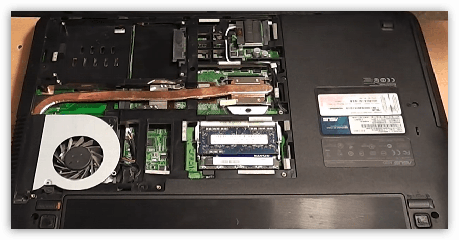 Для того чтобы устранить перегрев, виной которому плохая работа кулера, необходимо выполнить разборку ноутбука. Потребуется демонтировать жесткий диск и привод (если есть), отключить клавиатуру, открутить крепежи, соединяющие две части корпуса, достать материнскую плату, а затем разобрать систему охлаждения.