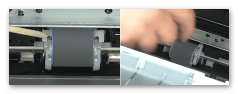 В этой статье вы уже узнали, что за захват листов отвечает специальный ролик. Он представляет собой особый механизм, состоящий из нескольких частей. Конечно, со временем или при физическом воздействии такие компоненты могут давать сбои в работе, поэтому и нужно проверять их состояние. В первую очередь выполните чистку: