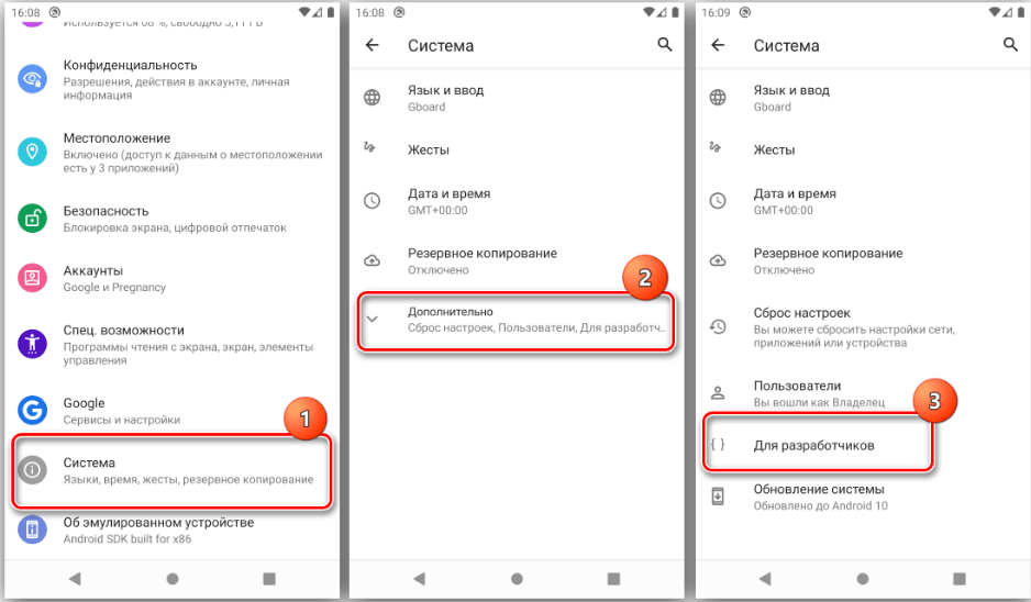- Перейдите в раздел «Для разработчиков» (может скрываться в подменю «Расширенные» или «Дополнительно»).