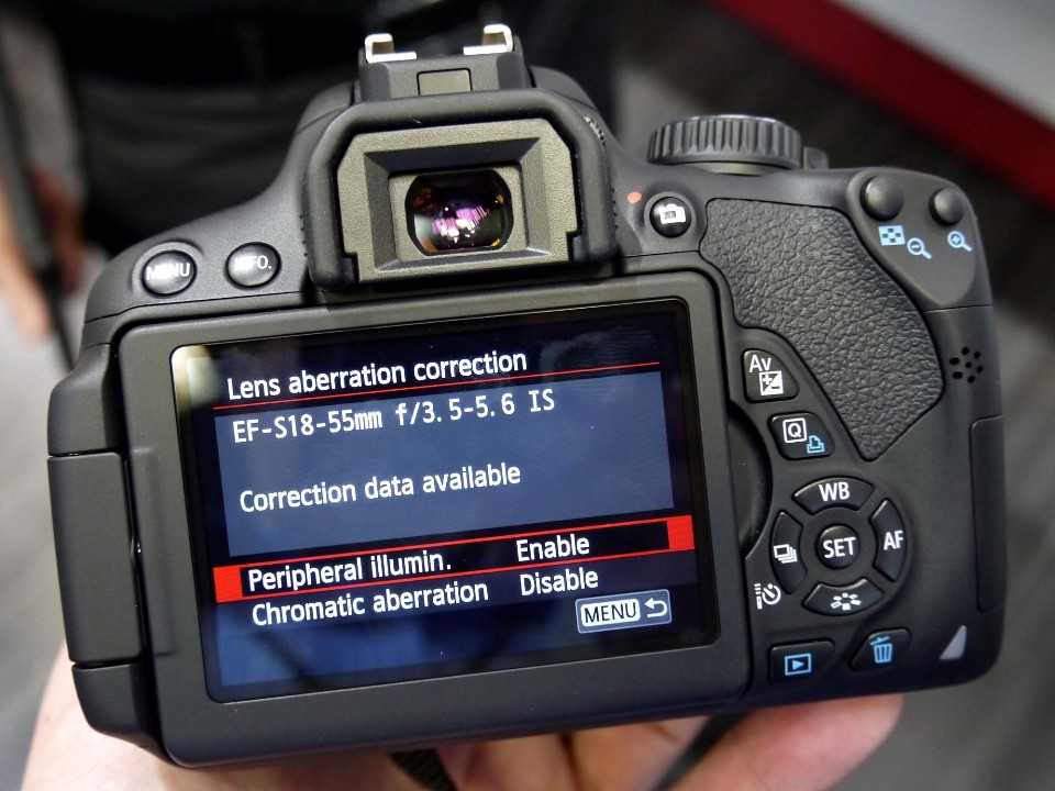Некоторые фотокамеры допускают устранение нежелательного эффекта встроенными средствами. Система коррекции имеется у фотокамер Nikon и Canon. В Canon она называется «Контроль периферийного освещения». Опция фотоаппарата позволяет корректировать потемнение периферийных областей снимка в зависимости от типа применяемого объектива. Для того чтобы эта функция заработала она должна распознать марку оптической системы фотоаппарата.