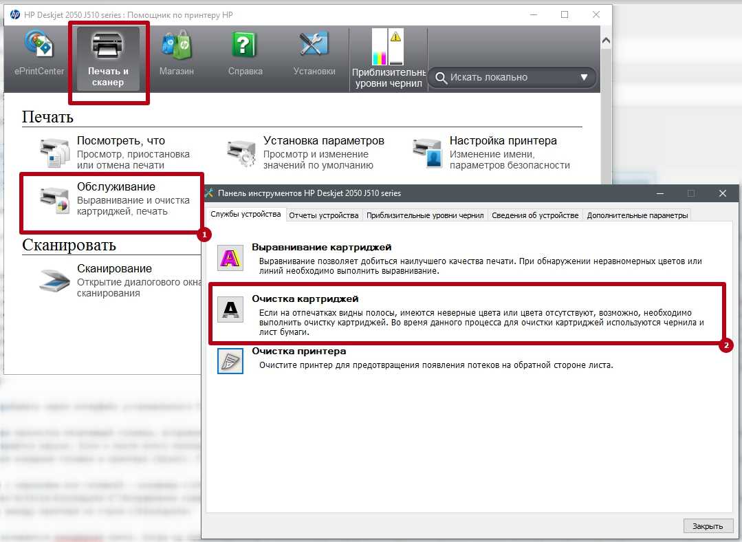 На вкладке «Обслуживание» есть необходимые функции чистки. Сначала рекомендуется выполнить обычную чистку, затем глубокую.