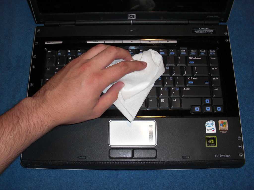 Чистка клавиатуры ноутбука, на которой обязательно скапливаются пыль и различные загрязнения различного характера, должна выполняться регулярно — раз в месяц. Перед началом ноутбук необходимо обязательно обесточить и извлечь из него аккумулятор, выполняется с целью очистки от загрязнений и пыли как поверхности клавиш, так и пространства между ними.