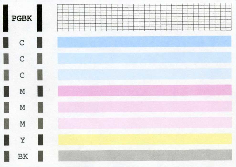 - При выполнении теста сопел часть изображения пропускается на бумаге, во время печати видны белые полосы, цвета воспроизводятся некорректно или одна из них полностью отсутствует. Эти следы засорения возникают при длительном использовании принтера.