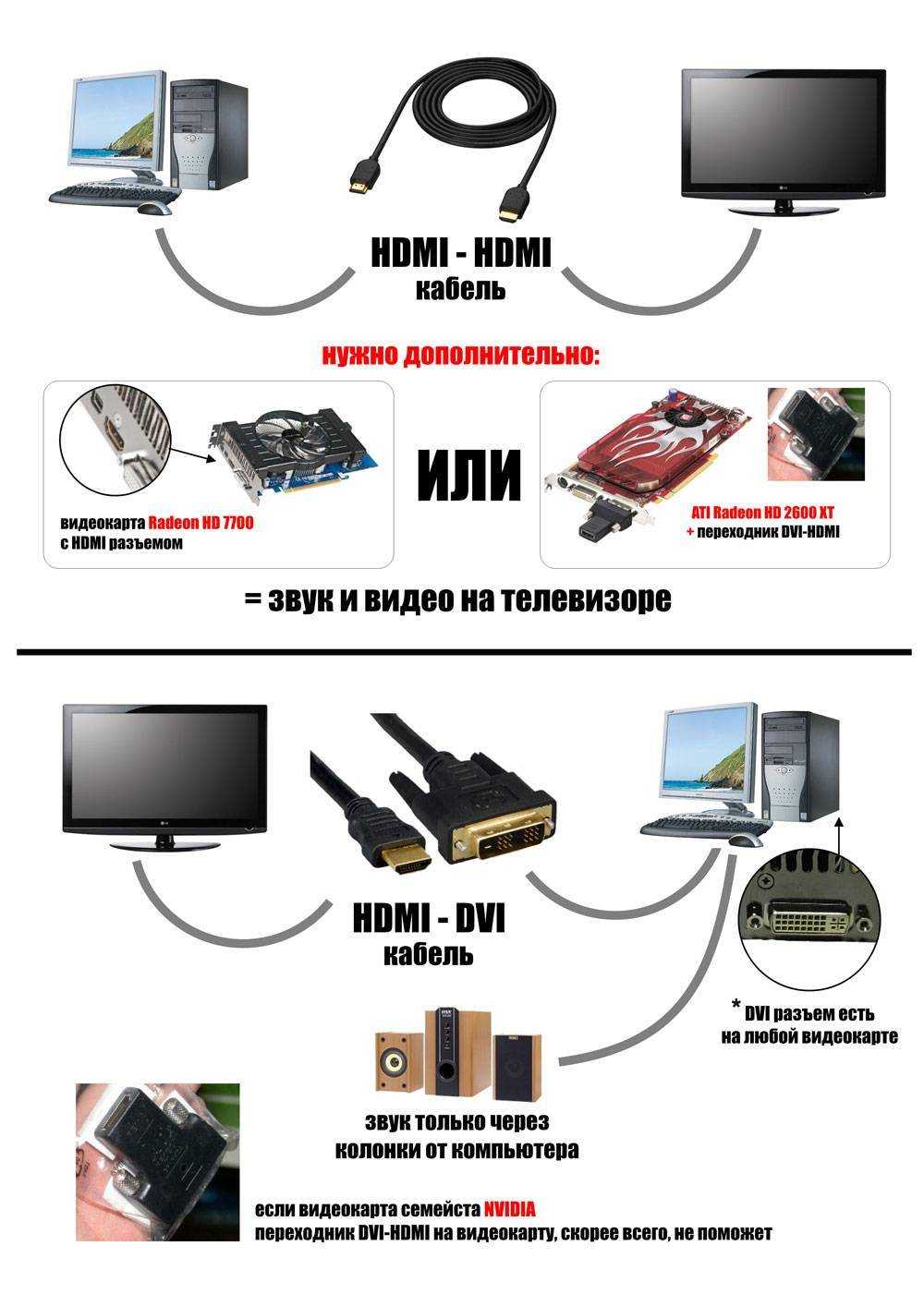 Эта схему выведения звука с компьютера на телевизор рекомендуется применять только в том случае, если устройство не может передавать сигнал, через DVI. Обычно этот способ используется на устаревшем оборудовании.