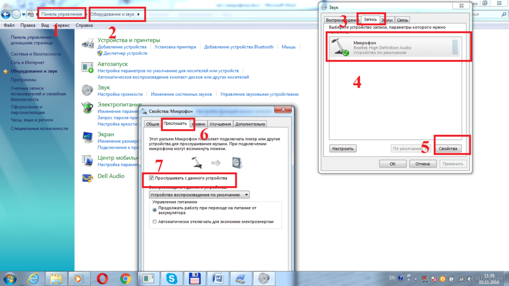 - Во вкладке «прослушать» ставим галочку напротив «прослушать с данного устройства».