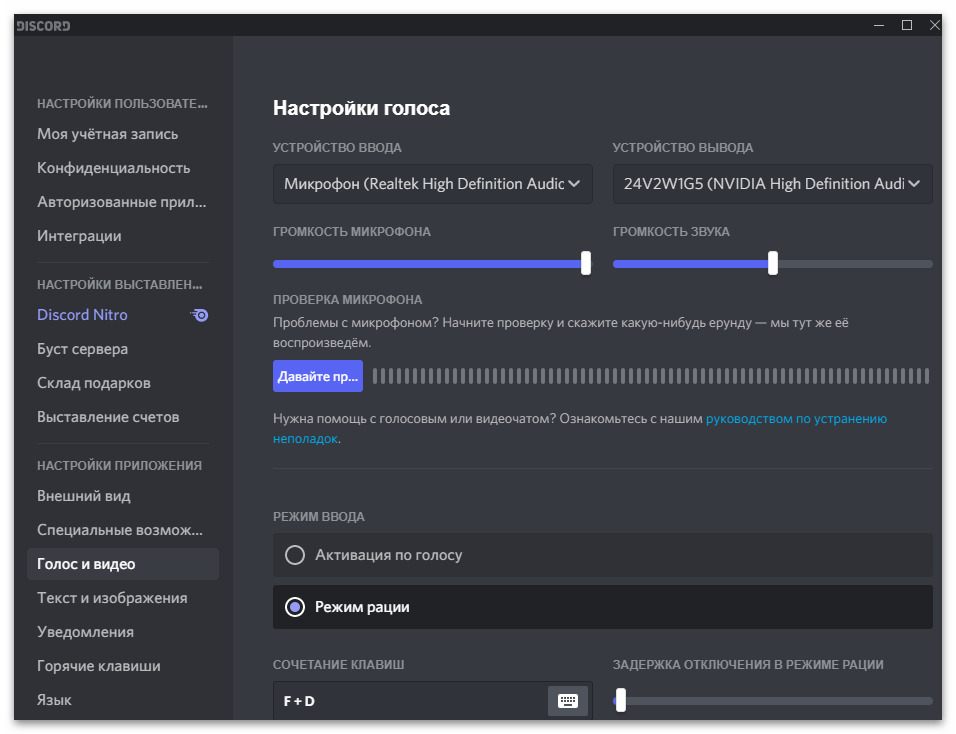 В популярную программу для общения под названием Discord разработчики добавили большое количество различных настроек для устройства ввода, предоставив пользователю возможность гибко изменить любые параметры, выбрать тип активации микрофона и улучшения для него. Однако можно начать использование и без настройки, поскольку установленные по умолчанию значения позволяют без каких-либо проблем общаться по голосовой связи.