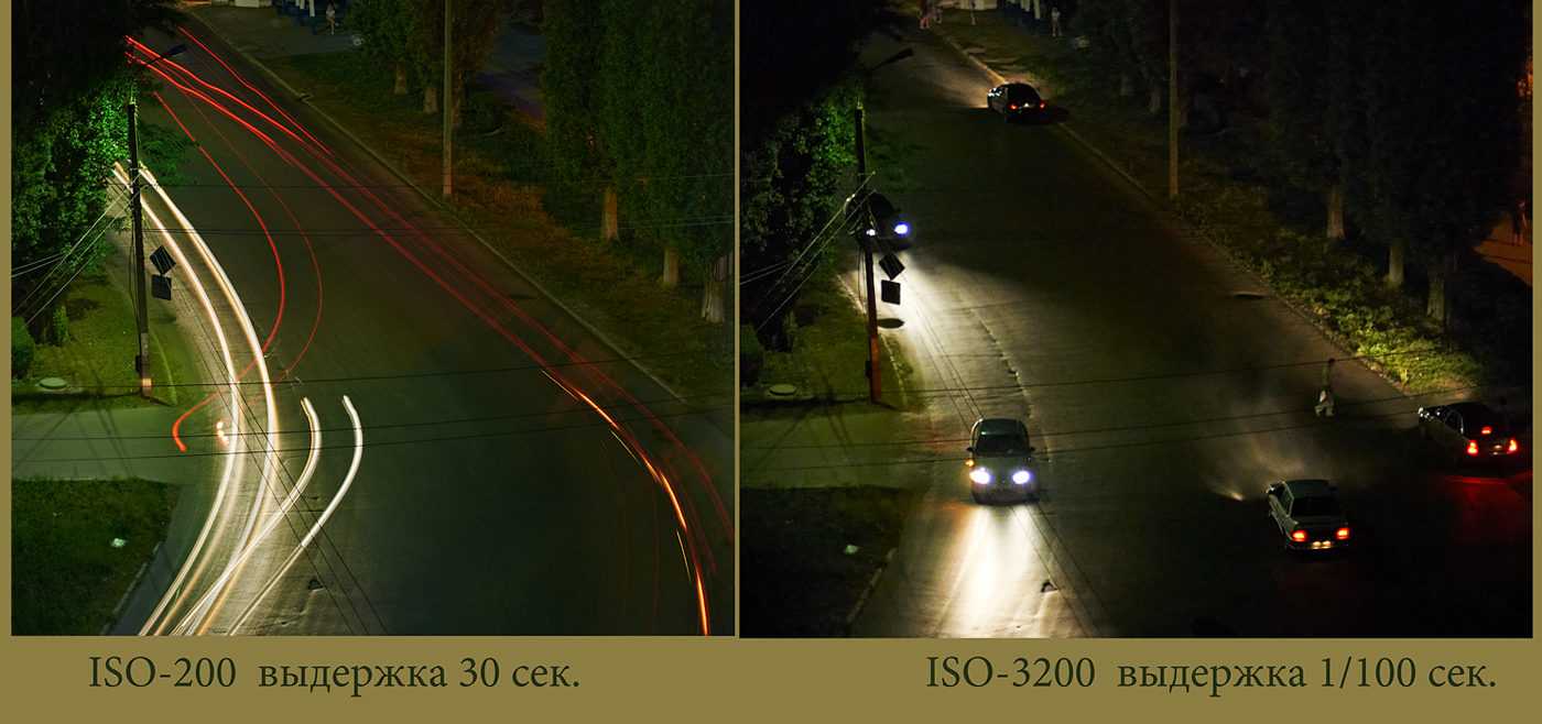 Это еще один важный параметр, отвечающий за коэффициент поглощения света. Чем выше значение, тем больше света будет пытаться поглотить матрица камеры. Днем или в ярком помещении этот параметр нужно сводить к минимуму, чтобы не засветить фотографию. Ночью же, наоборот, параметр позволяет сделать темные объекты видимыми. Если при настройке выдержки кадр стал слишком ярким, то попробуйте уменьшить ISO.