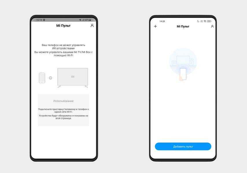 Пример работы Mi Remote Controller со смартфоном без ИК-датчика (слева) и с ИК-датчиком (справа)