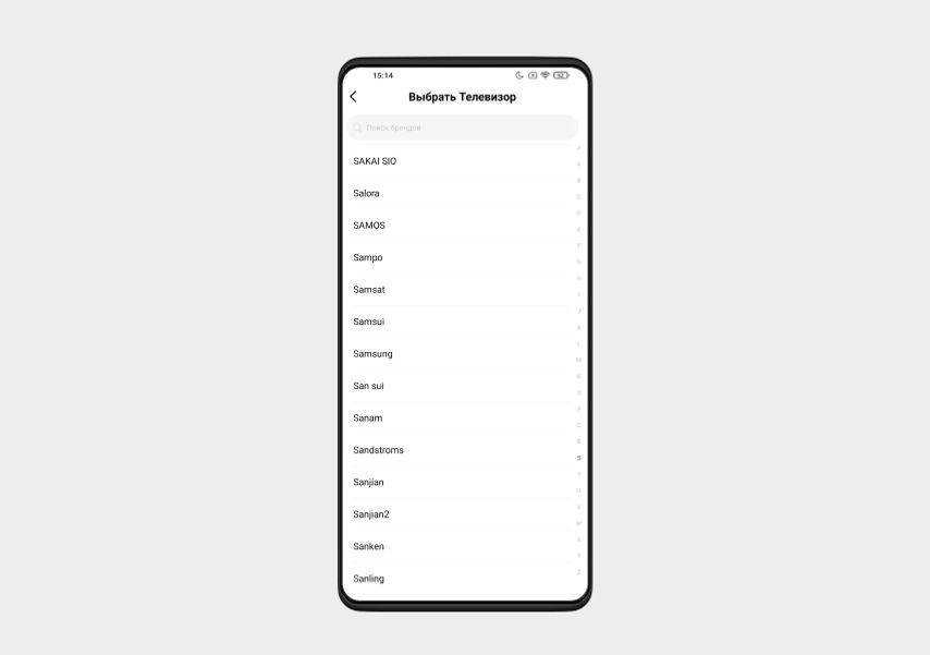 Дальше нужно выбрать бренд. Мы подключаем телевизор Samsung UE43J5202AUXRU , так что выберем Samsung.