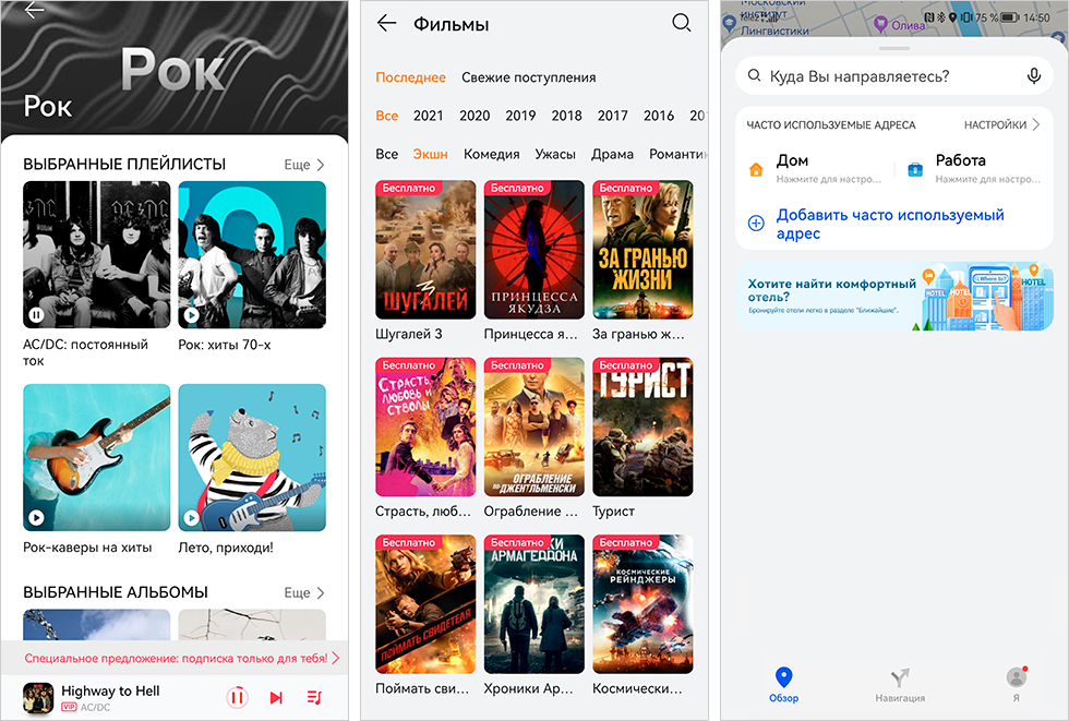 Кино, книги и музыка Huawei. На смартфонах, планшетах и умных телевизорах Huawei установлен фирменный сервис «Huawei Видео». Есть платный и бесплатный разделы с контентом из российских онлайн-кинотеатров. В отдельной вкладке для детей можно найти и «Машу и Медведя», и советские мультфильмы.