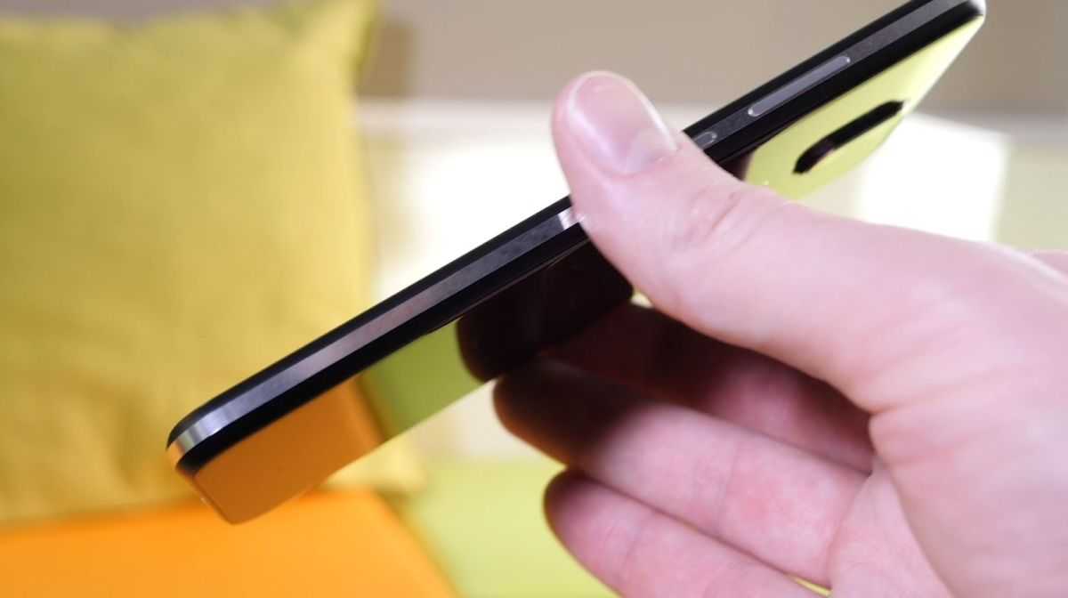 Переход между пластиковой частью рамки и «остеклением» на передней и задней сторонах отчетливо виден и ощущается на ощупь, так как Gorilla Glas выпирает на полмиллиметра. Протестированное нами устройство на задней стороне имело нескромную щель, которая позволяла даже вставить ноготь под заднюю крышку. Это серьезный минус, но мы исходим из того, что данный случай является скорее всего единичным. Помимо прочего, металлическая часть рамки отлично собирает отпечатки пальцев.
