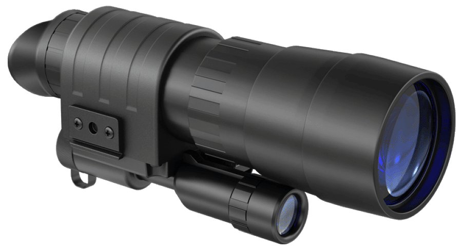 Монокуляр дополнен широкоугольным инфракрасным осветителем, он позволяет использовать разнообразные аксессуары. Компактный прибор заключен в композитный корпус, качественно защищающий от механических повреждений и контакта с влагой, он оснащен двумя крепежными приспособлениями, подходящими под штатив или маску.