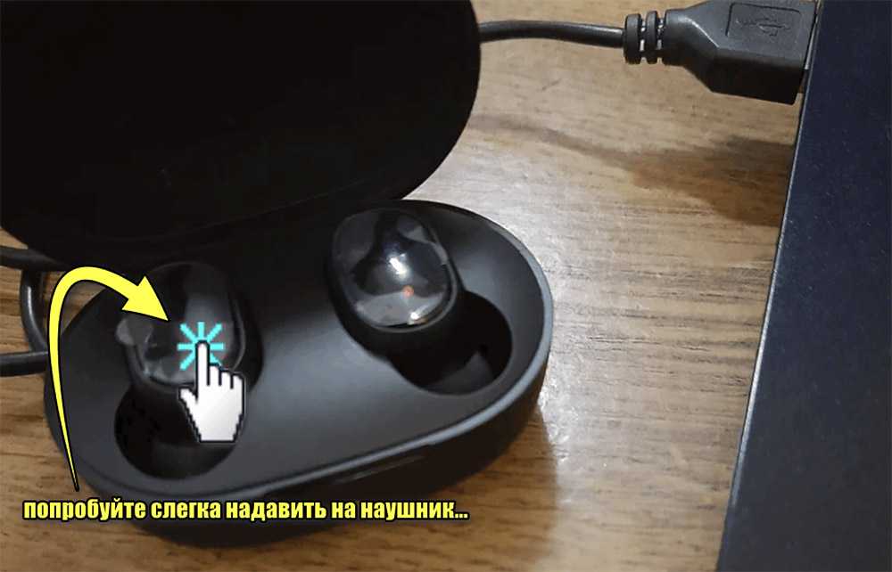 Однако у некоторых беспроводных наушников у нее другое назначение — активация режима зарядки. Такое попадается чаще всего в недорогих репликах Apple Airpods.