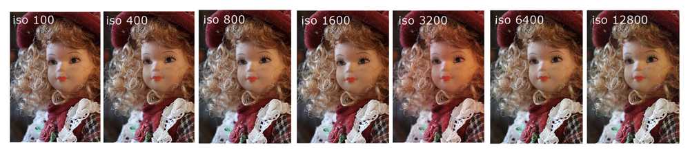 Фото 11. Серия кадров с чувствительностью от 100 до 12 800 ISO показала, что аппаратное шумоподавление при включении на максимум хорошо устраняет артефакты высокой чувствительности.