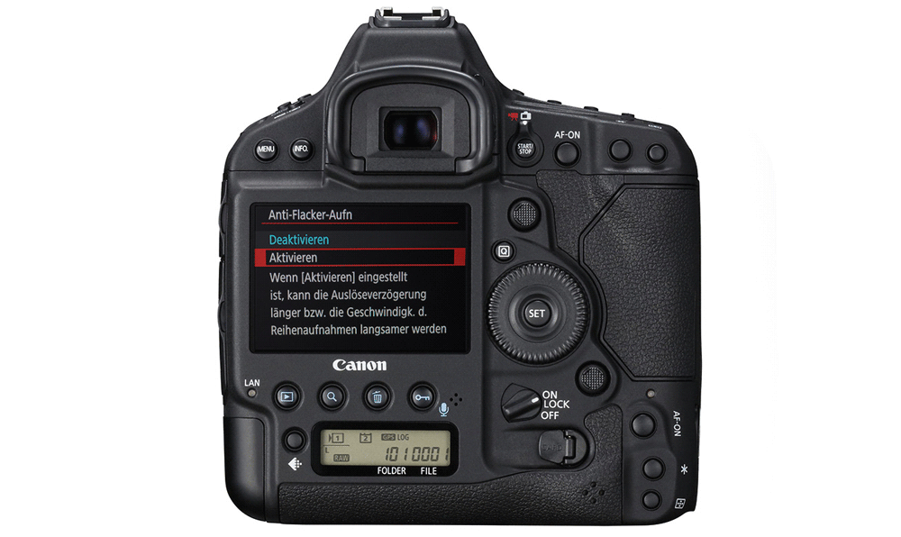 Canon EOS 1D X Mark II: ЖК-дисплей на задней панели показывает актуальные настройки и номер кадра.