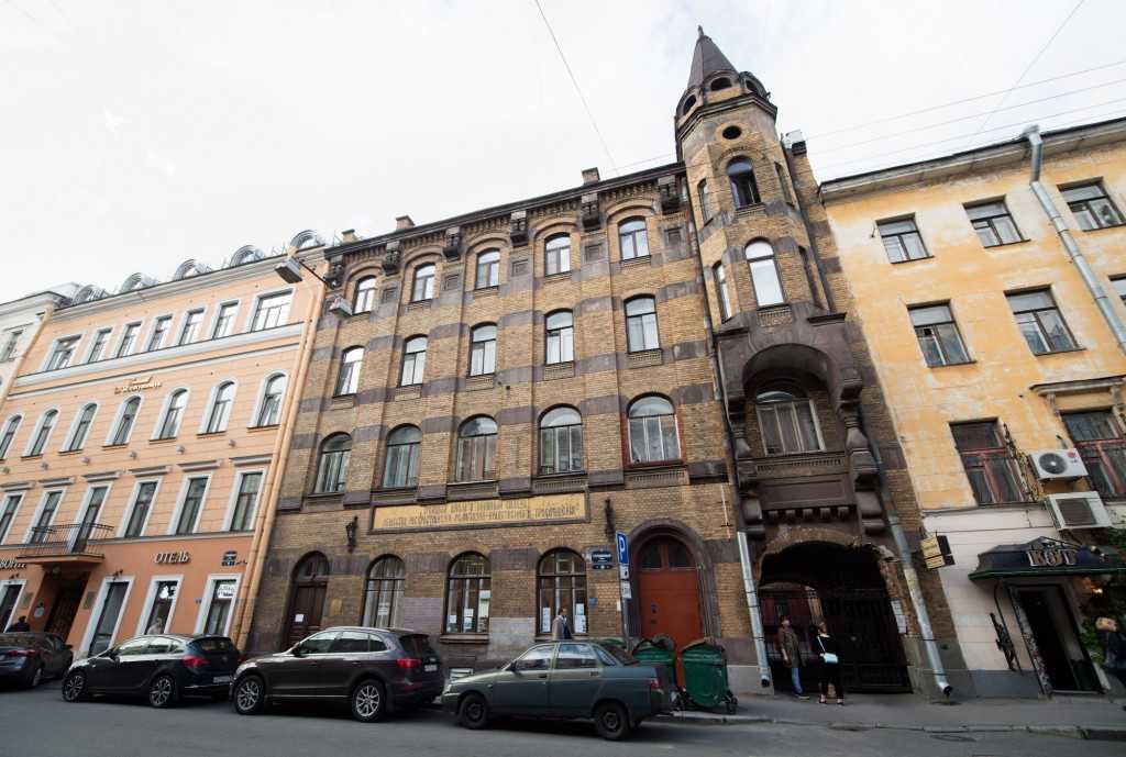 В Петербурге пока много исторических зданий. Это старинное здание было школой и книжным складом до революции, о чём свидетельствует надпись.