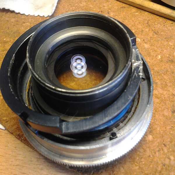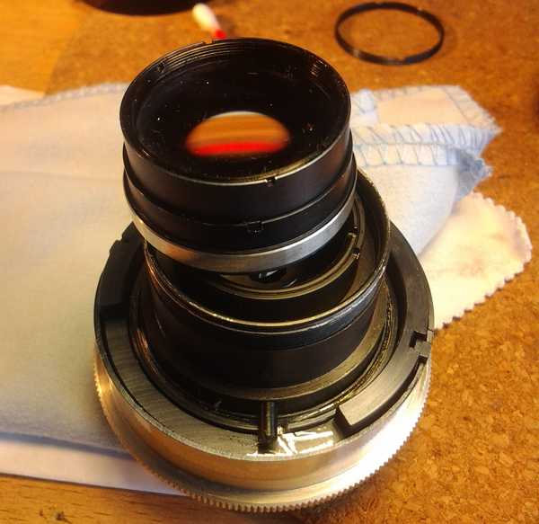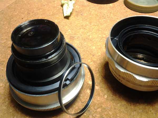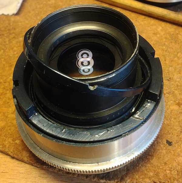 Задняя линза вставляется и крепится ( я вас удивлю) стопорным кольцом.И нужно быть смелым немецким инженером, чтобы так независимо базировать линзы.И рассчитывать, что их оптические оси совпадут, и они таки совпадают.