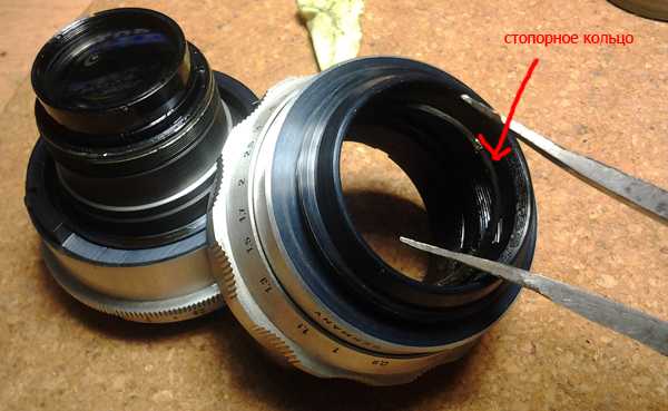 Механизм диафрагмы с предустановкой и тоже стопорное кольцо.