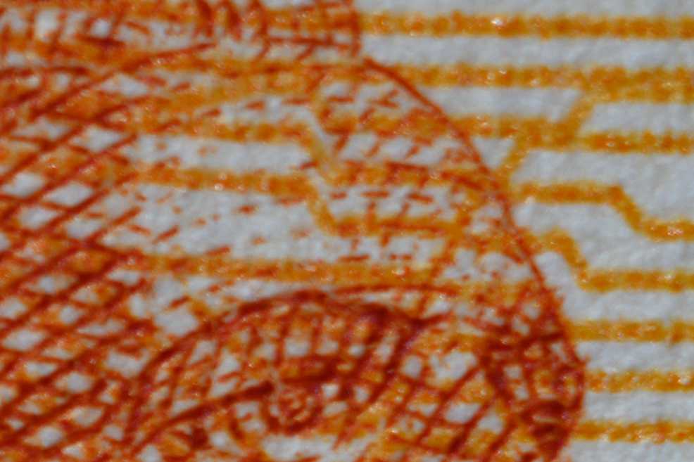 Итак, начнём с резкости. Наша стандартная тестовая мира для этого подходит неочень, поскольку мы говорим о макрообъективе. Поэтому будем использовать денежную купюру, которая лучшим образом продемонстрирует качество изображения нашего героя.