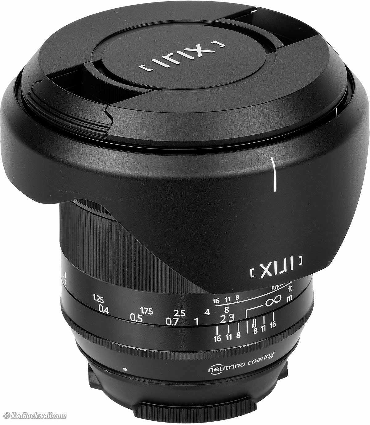 Irix 15mm f/2.4 in metal «Blackstone» barrel, Canon version (95mm or rear gel filters, 22.6 oz./642g, 0.8’/0.25m close-focus, about $675; $425 for same optics in «Firefly» plastic outer barrel). bigger. It comes in mounts for Nikon, for Canon and for Pentax. I’d get it at Adorama, at Amazon or at B&H.