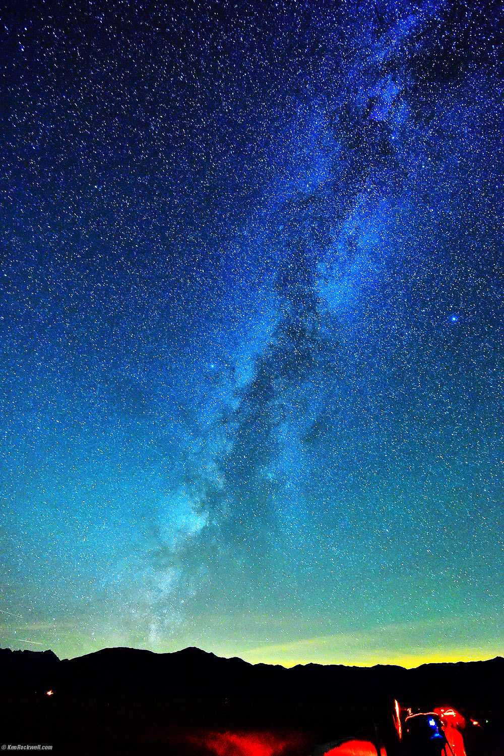 The Milky Way as Seen from Bridgeport, 21 October 2014, 9:33 PM. (Nikon D810, Nikon 16-35mm VR at 16mm, f/4 for 30 seconds at ISO 12,800.) Bigger. See also How to Photograph the Milky Way.