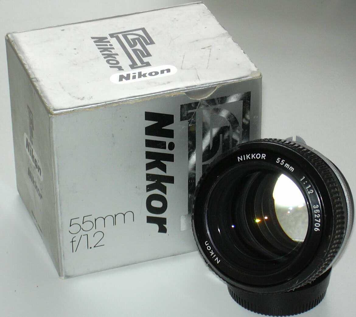 mm.) filter ring: NIKKOR-S Auto 1:1.2 f=55 mm Nippon Kogaku Japan No.