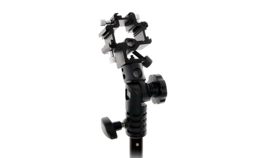 Мы решили эту проблему, используя держатель вспышек от Lastolite: Triflash Shoe lock. Этот держатель не только надежно фиксирует вспышку, но позволяет установить две дополнительные вспышки для создания мощного источника света или экономии энергии батареи.
