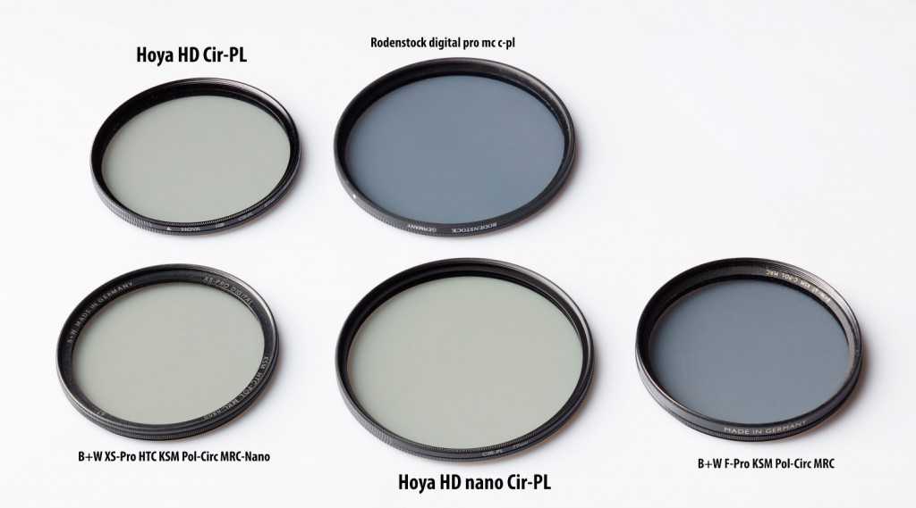 На этом снимке вы можете посмотреть какие фильтры имеют стандартную «тёмную» пленку, а какие «светлую», более современную. «Светлые» пленки имеют B+W XS-PRO HTC, Hoya HD Nano, Hoya HD.