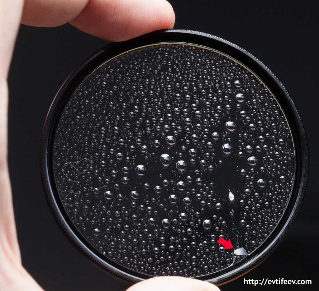 Кроме всего прочего фильтры B+W имеют гидрофобное покрытие, которое обеспечивает собирание капель в шарики и скатывание их со стекла.