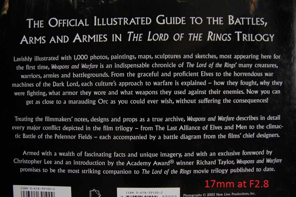 The Sigma 17-70mm is not a fixed aperture lens. This means that as the focal length is increased the maximum aperture is reduced. At the widest focal length of 17mm, the maximum aperture is a nice and fast f/2.8. At this maximum aperture the center image sharpness is surprising good. I would nearly call it great, in fact. There is noticeable fall-off of the sharpness at the corners with some purple fringing aberrations but again, nothing that is overly disrupting.The barrel distortion is evident but not unacceptable especially considering this image was shot at the lenses minimum focusing distance of approximately 8.6 inches (22cm). I also noted that on the model I tested the minimum focusing distance was less than the listed measurement.