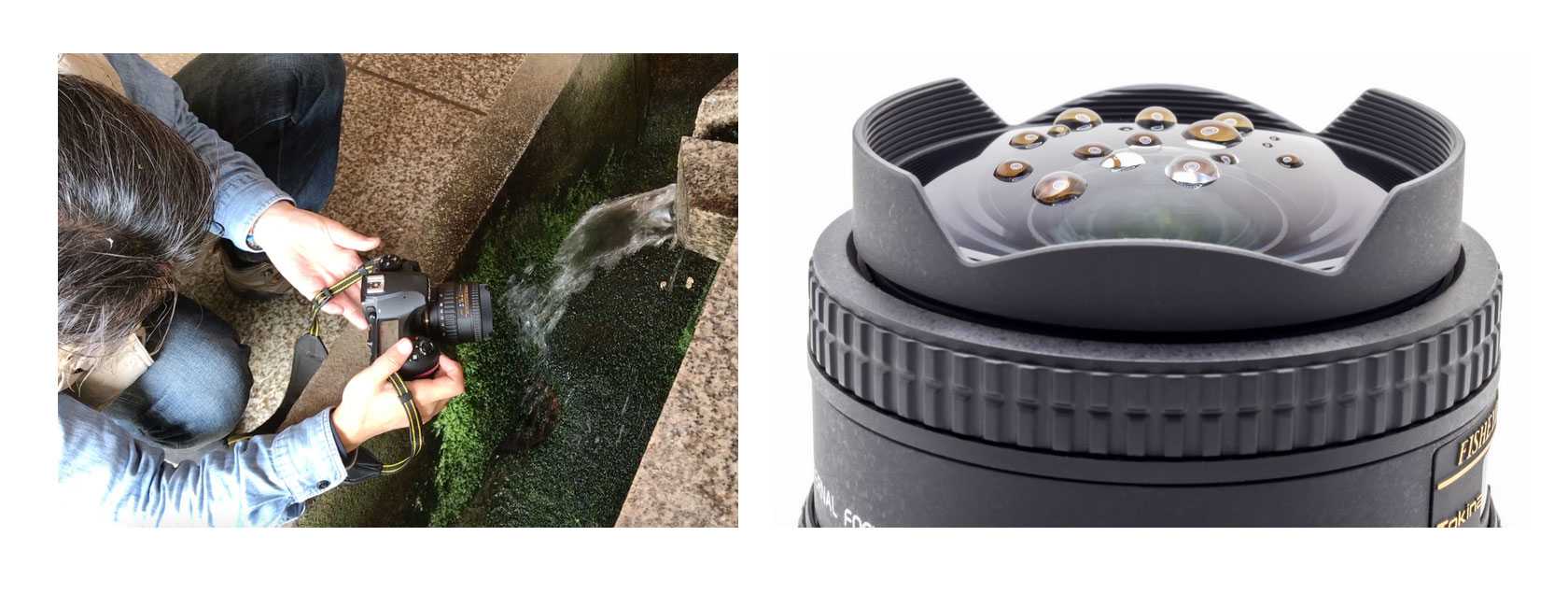 The internal focus system of the Tokina AT-X 107 DX allows photographer to shoot close up shots with a distance from camera sensor to the subject of just 14cm. While focusing this close water drops or other smudges may come into contact with the front of the lens. The WR (water-repellent) coating on the front element makes water drops bead up and roll off. It also makes cleaning off finger-prints and other smudges much easier compared to standard multi-coating.