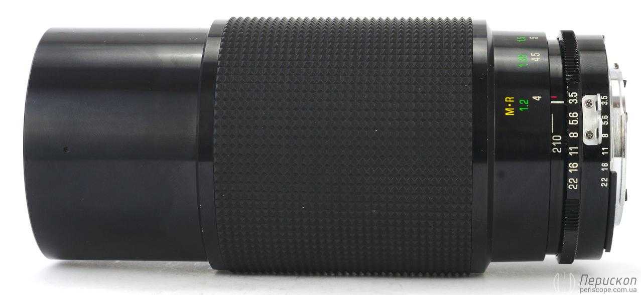 Диафрагма имеет 6 лепестков. Закрывается дискретно: 3,5-5,6-8-11-16-22. У объектива нет режима макро, такого как у первой версии, сделанной Кироном. Поэтому МДФ составляет 1,2 м. Это позволяет снимать на длинном конце в максимальном масштабе 1:4.