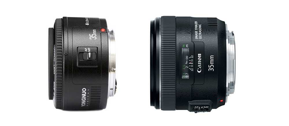 Canon EF 35mm F/1.4L II USM (слева) и YN35mm F1.4C DF UWM (справа)