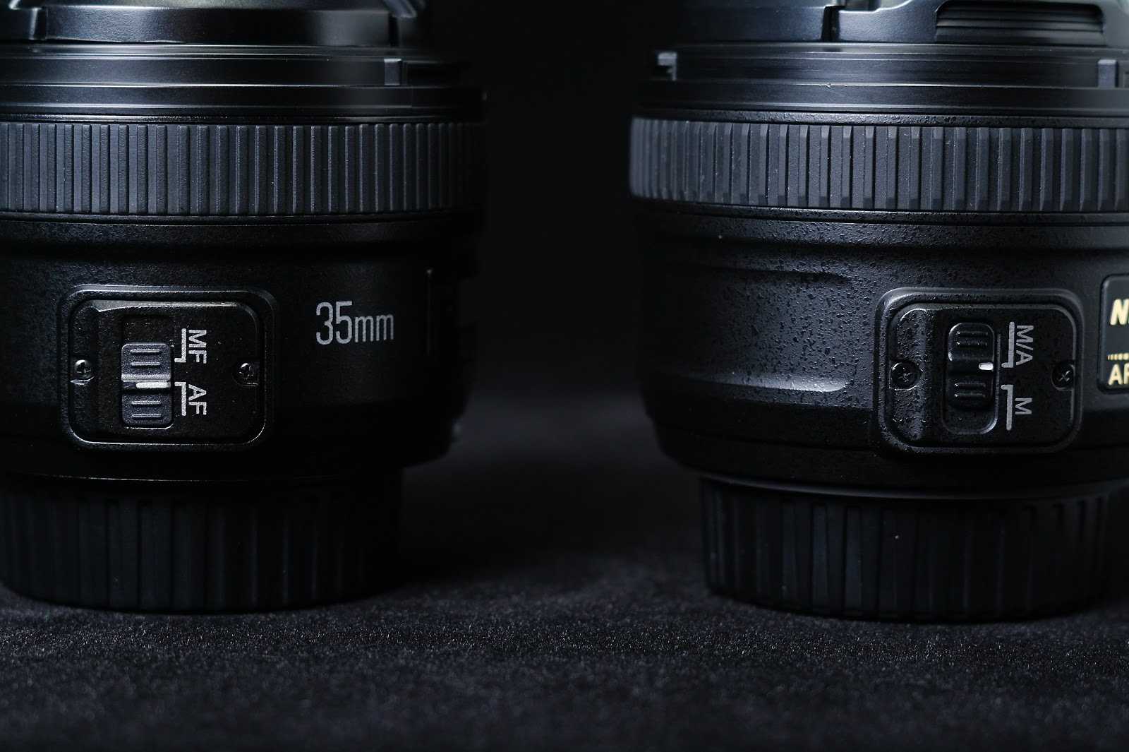 Есть одна отличительная черта объектива Yongnuo от объективов Nikon — это переключатель режима фокусировки. У Yongnuo он наоборот.