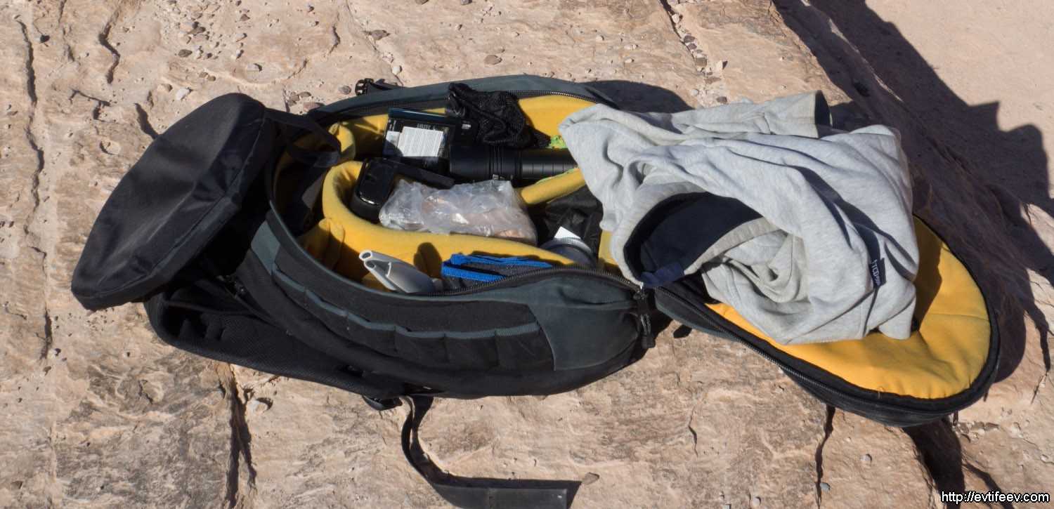 — рюкзак KATA (на все случаи жизни. в данном случае я туда положил камень из пустыни, завернув в полиэтилен. А то очень уж легко было )