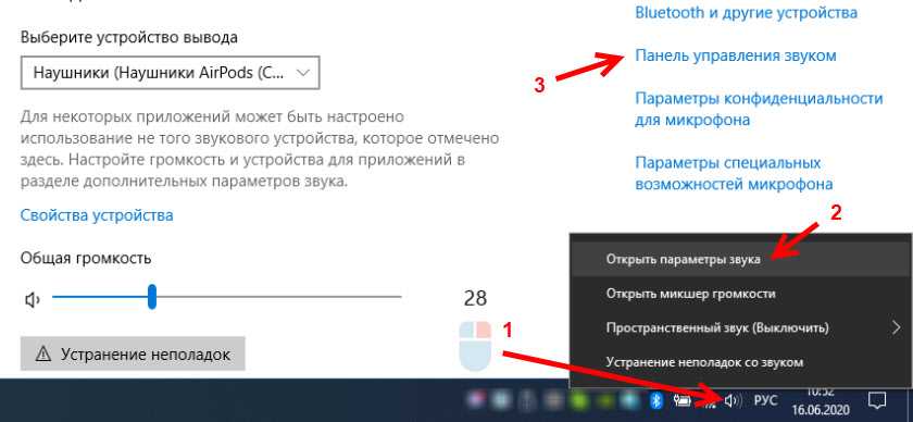 После настройки проводят тестирование и выставляют громкость звука. В случае необходимости нажимают на кнопку «Устранение неполадок» внизу вкладки.