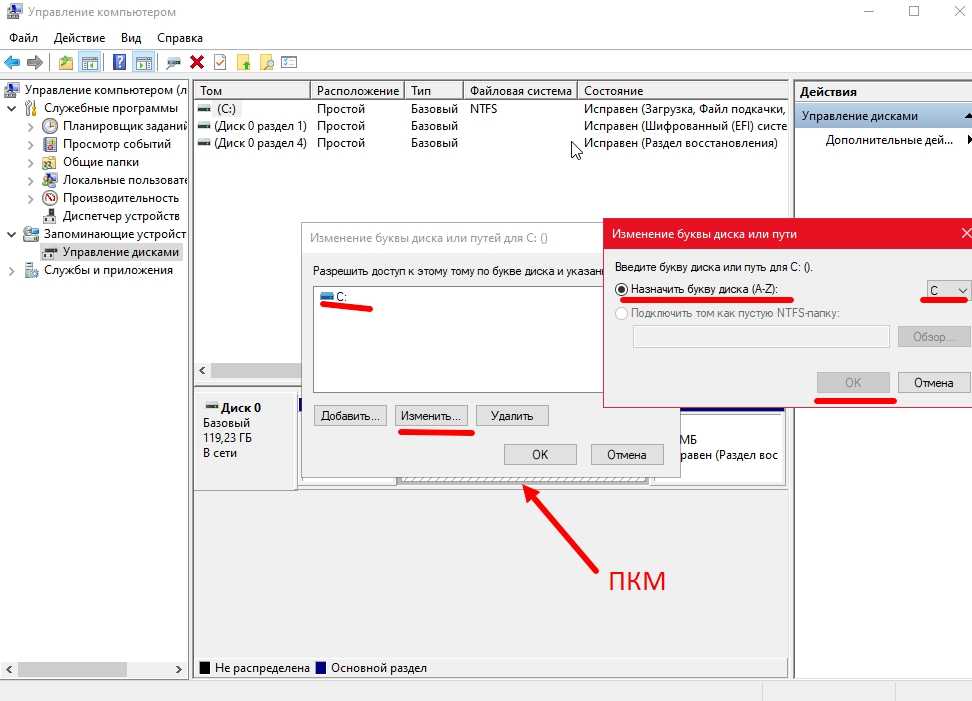 Как назначить ее? Все, что вам нужно сделать, — щелкнуть по нему ПКМ и выбрать «Изменить букву».