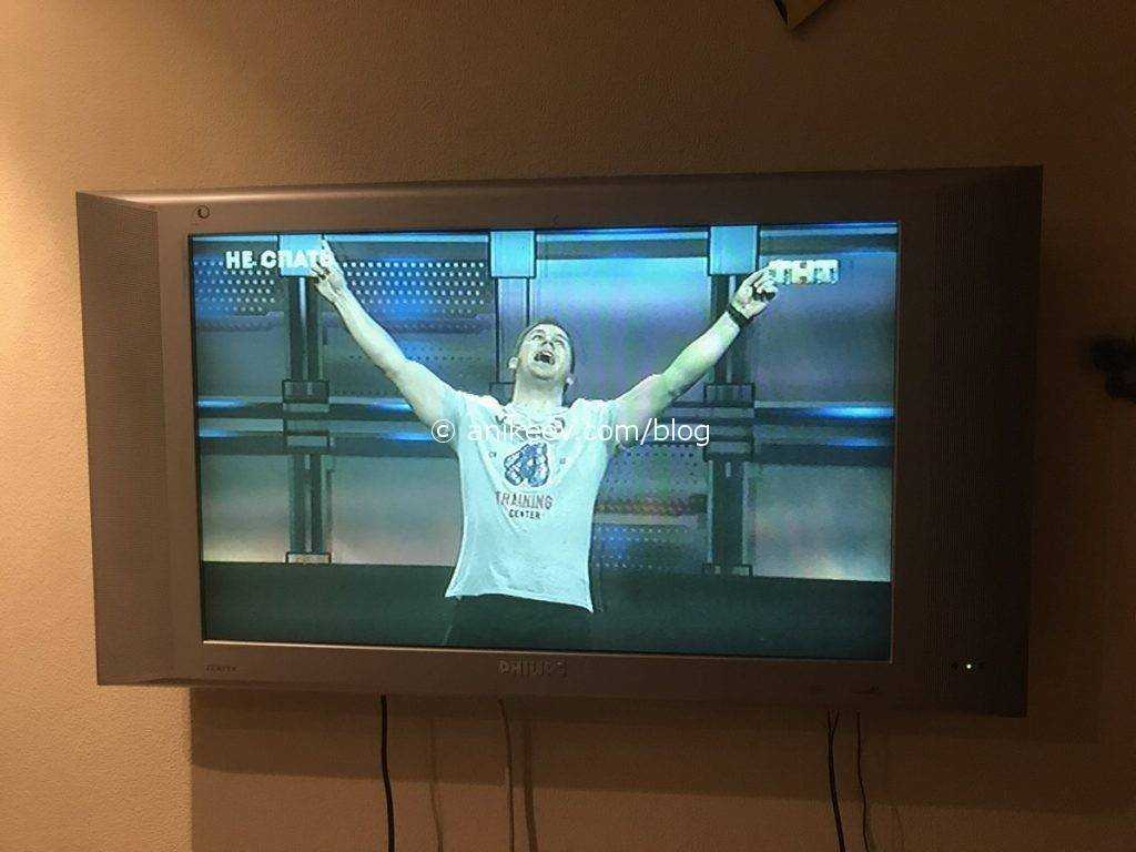 Собираем телевизор окончательно, вешаем на стену, подключаем все кабели и смотрим. В отличие от CCFL-ламп, которые светят во все стороны, светодиодная лента даёт довольно направленный свет, поэтому на однотонном фоне она неслабо заметна.