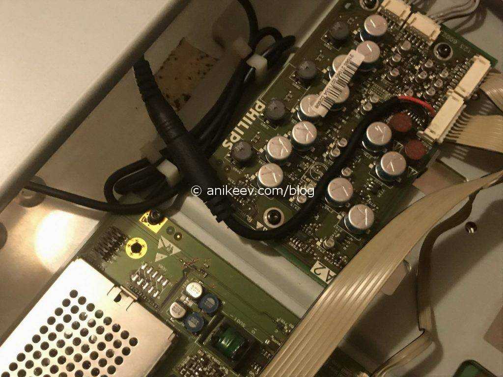 Чаще всего наряду с подсветкой прекращает работать блок питания. Определить, что вышел из строя именно он, можно по следующим признакам: