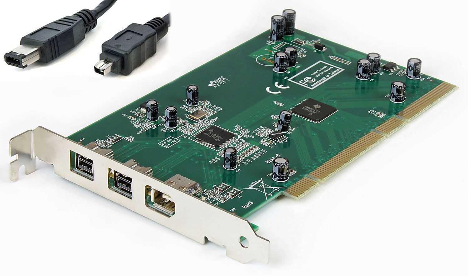 Если ваша видеокамера записывает в цифровом формате и обеспечивает цифровое соединение DV (firewire, iLink, IEEE1394) для передачи аудио и видео на ПК, ваш ПК должен иметь такой тип соединения для прямой загрузки. Если нет, и вы не можете использовать альтернативные аналоговые видеосоединения видеокамеры, вам нужно будет установить в компьютер карту FireWire, например, показанную ниже.