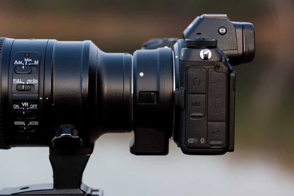 Объектив Nikkor 70-200mm f/2.8G ED AF-S VR II, установленный на Nikon Z7 через переходник FTZ