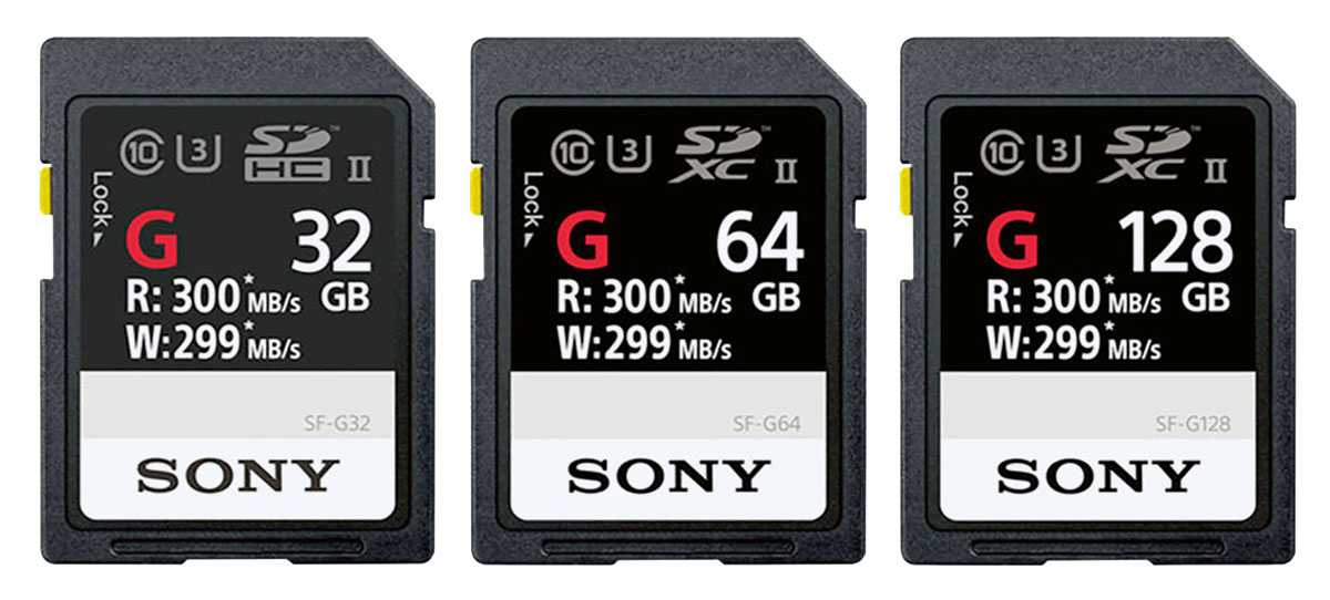 Sony SF-G UHS-II SD are available in 32GB, 64GB & 128GB (Stick to 64 or 128 GB SDXC cards for video)