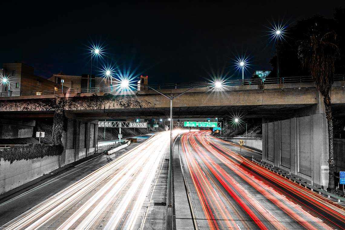 На мой взгляд, это выглядит не очень красиво, но вы можете использовать продолжительную выдержку (20-30 секунд), чтобы усилить эффект «потока» от движущихся машин.